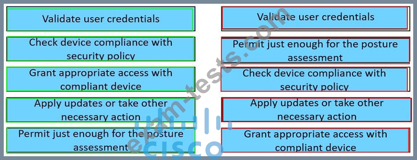 Drag and drop the posture assessment flow actions from the left into a sequence on the right.