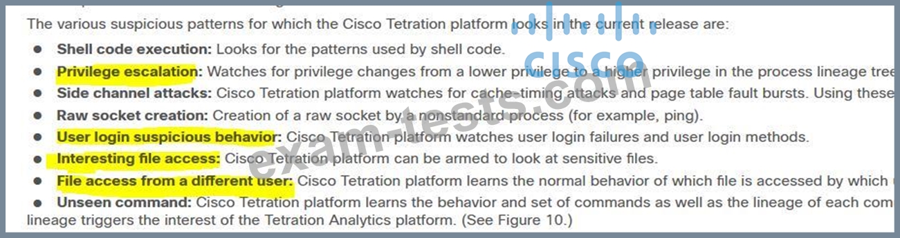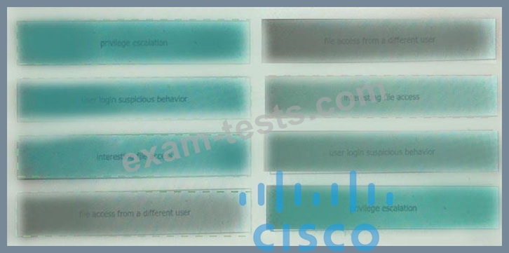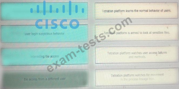 Drag and drop the suspicious patterns for the Cisco Tetration platform from the left onto the correct definitions on the right.