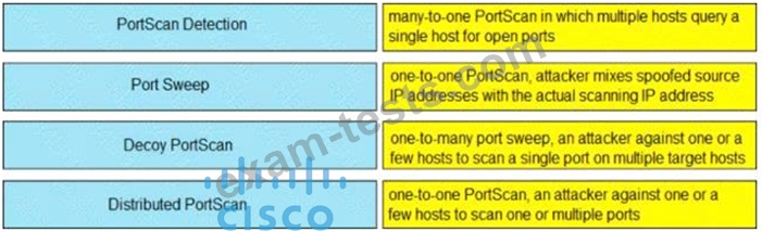 Drag and drop the Firepower Next Generation Intrusion Prevention System detectors from the left onto the correct definitions on the right.
