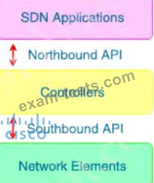 Which type of API is being used when a controller within a software-defined network architecture dynamically makes configuration changes on switches within the network?