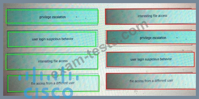 Drag and drop the suspicious patterns for the Cisco Tetration platform from the left onto the correct definitions on the right.