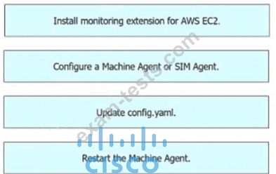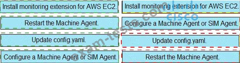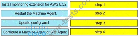 Drag and drop the steps from the left into the correct order on the right to enable AppDynamics to monitor an EC2 instance in Amazon Web Services.