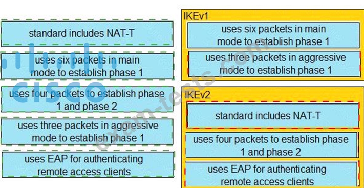 Drag and drop the descriptions from the left onto the correct protocol versions on the right.