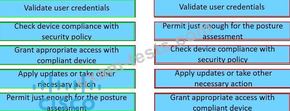 Drag and drop the posture assessment flow actions from the left into a sequence on the right.