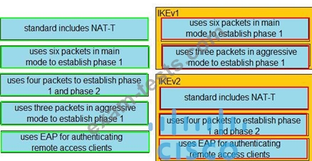 Drag and drop the descriptions from the left onto the correct protocol versions on the right.