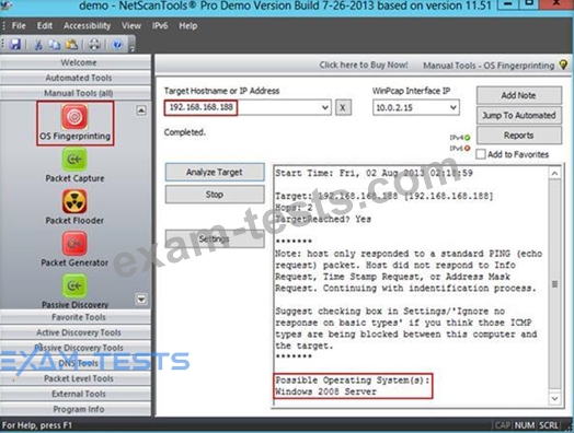 A penetration tester performs OS fingerprinting on the target server to identify the operating system used on the target server with the help of ICMP packets.