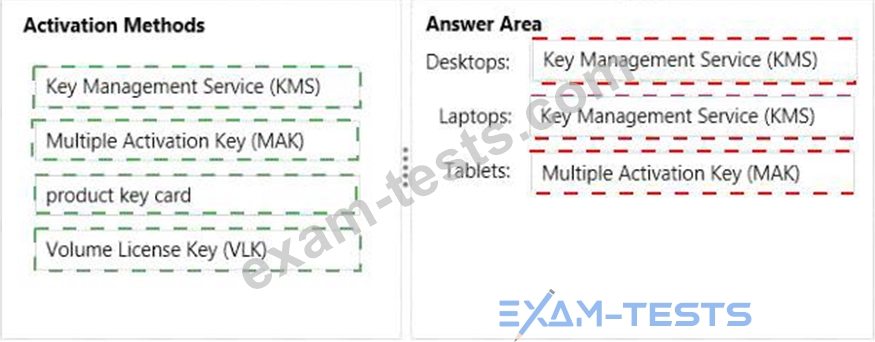 To answer, drag the activation method from the column on the left to its device on the right. Each activation method may be used once, more than once, or not at all.