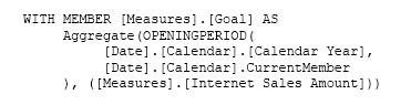 You need to complete the MDX statement to return data for the report.