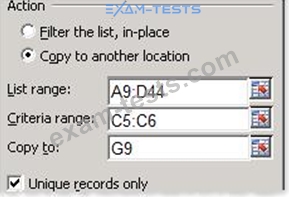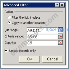 display the filtered list at a new location at the G9 cell position. You open the Advanced Filter