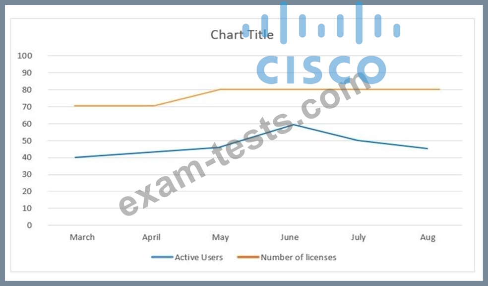 Refer to the exhibit. The graph shows a customer with a software product and highlights the number of paid-for licenses (shown with the orange line) and the number of users actively using the product (shown with the blue line). Which statement about the customer is true?