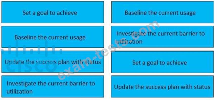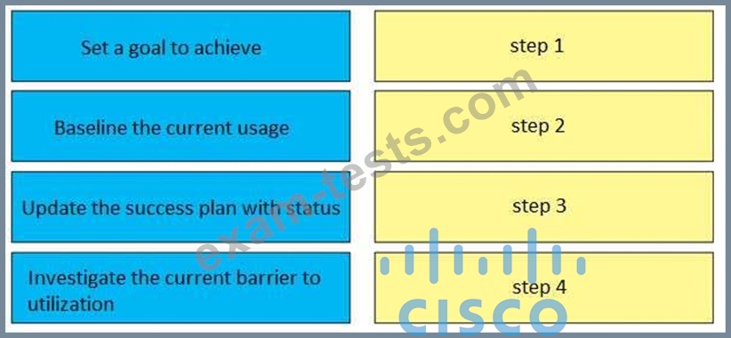 The customer wants to increase the utilization of their video conferencing system. Drag and drop the actions from the left into the correct sequence on the right.