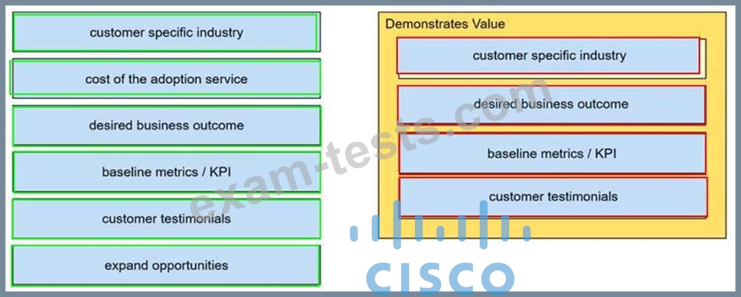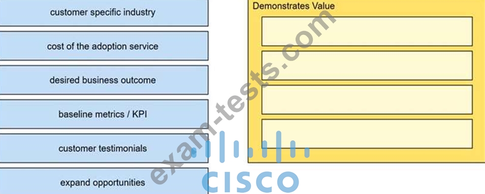 An external customer case study is being created. Drag and drop the contents which show value from the left onto the right. Not all content choices are used.