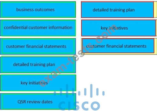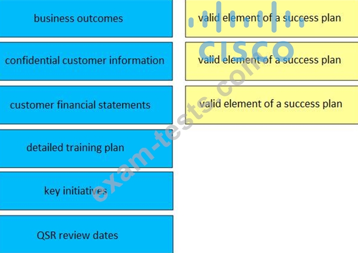 Drag and drop three valid elements of a success plan from the left to the right. Not all options are used.