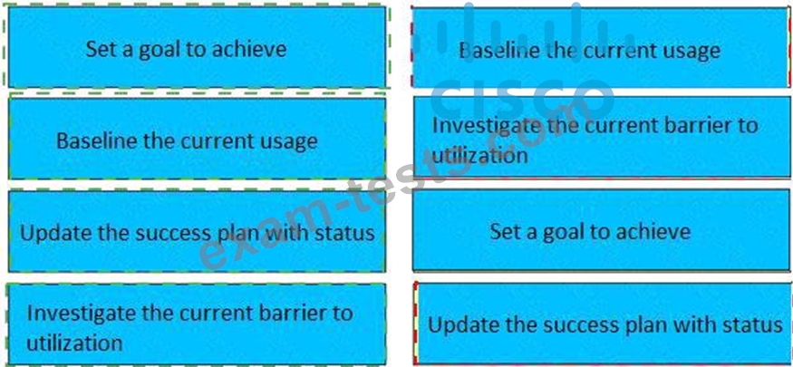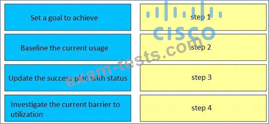 The customer wants to increase the utilization of their video conferencing system. Drag and drop the actions from the left into the correct sequence on the right.