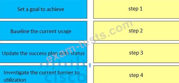 The customer wants to increase the utilization of their video conferencing system. Drag and drop the actions from the left into the correct sequence on the right.