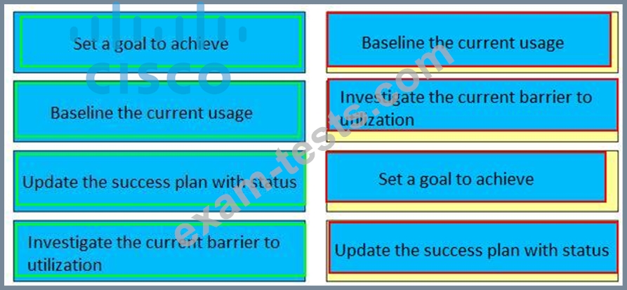 The customer wants to increase the utilization of their video conferencing system. Drag and drop the actions from the left into the correct sequence on the right.