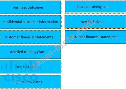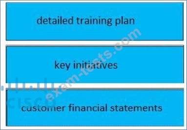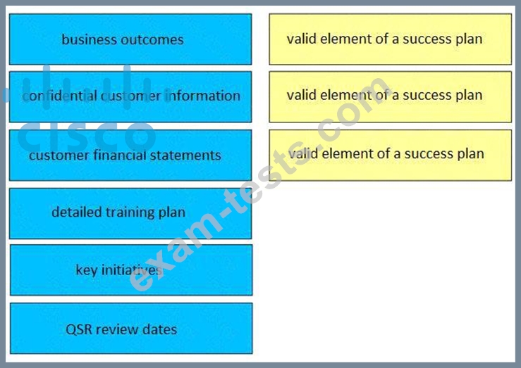 Drag and drop three valid elements of a success plan from the left to the right. Not all options are used.