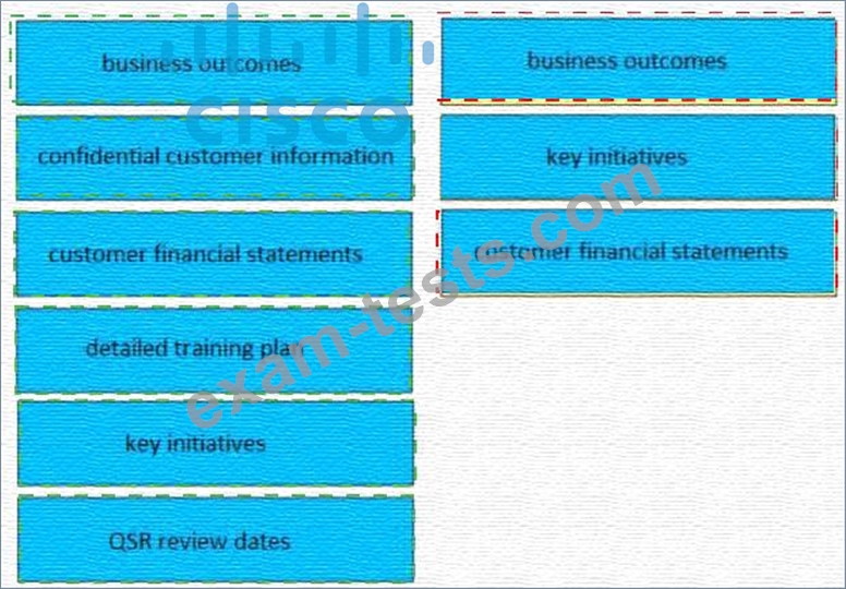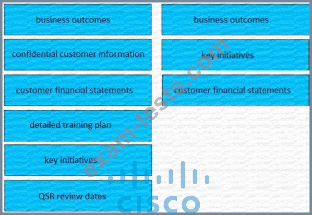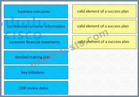 Drag and drop three valid elements of a success plan from the left to the right. Not all options are used. Select and Place: