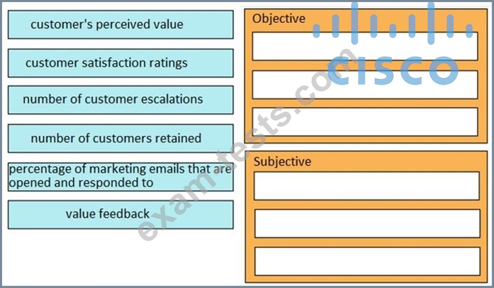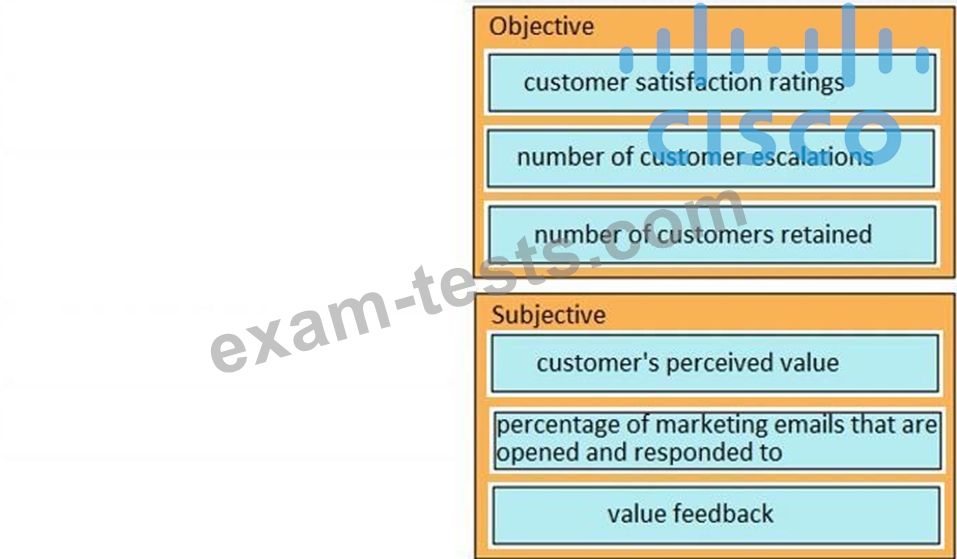 Drag and drop the inputs from the left onto the correct subjective and objective categories on the right.