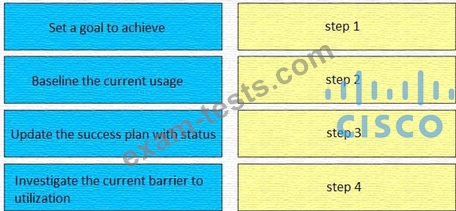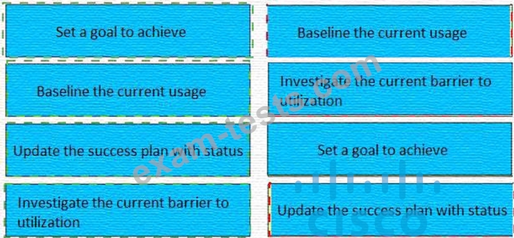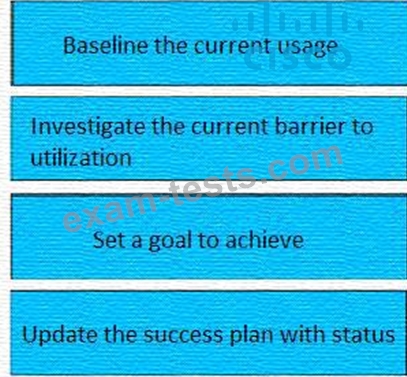 The customer wants to increase the utilization of their video conferencing system. Drag and drop the actions from the left into the correct sequence on the right.