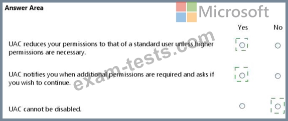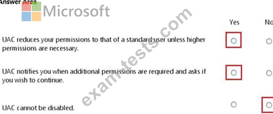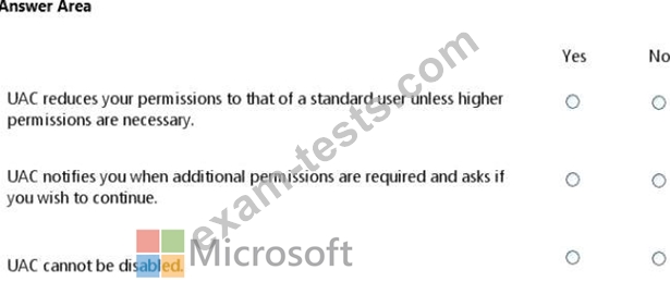 For each of the following statements, select Yes if the statement is true. Otherwise, select No. Each correct selection is worth one point.