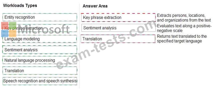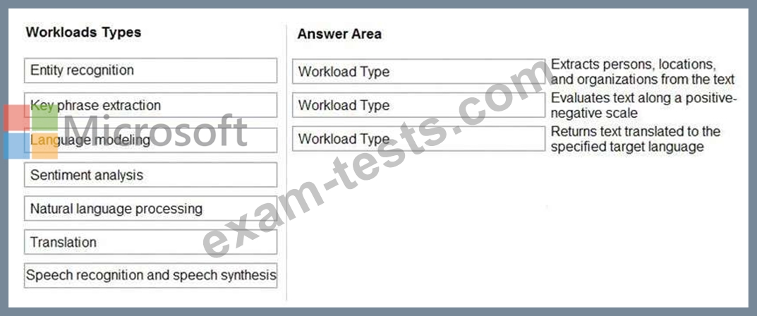Match the types of natural languages processing workloads to the appropriate scenarios.