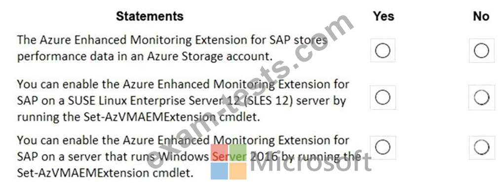 For each of the following statements, select Yes if the statement is true. Otherwise, select No. NOTE: Each correct selection is worth one point.