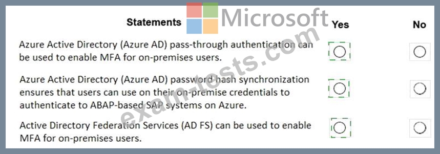For each of the following statements, select Yes if the statement is true. Otherwise, select No.