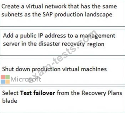 Which four actions should you perform in sequence? To answer, move the appropriate actions from the list of actions to the answer area and arrange them in the correct order.