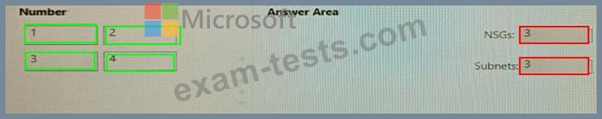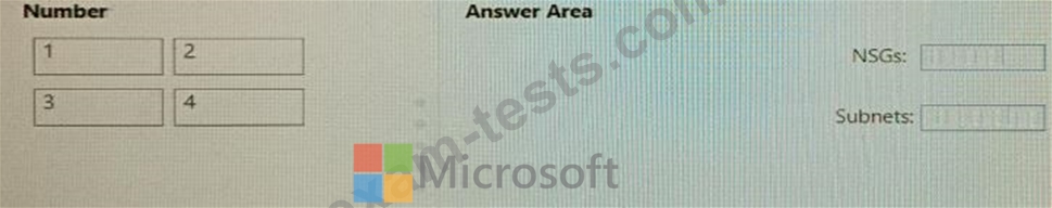 What is the minimum number of network security groups (NSGs) and subnets required? To answer, drag the appropriate number to the correct targets. Each number may be used once, more than once, or not at all. You may need to drag the split bar between panes or scroll to view content.