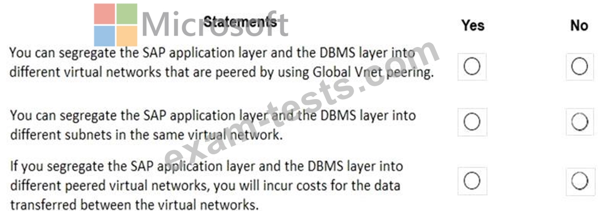For each of the following statements, select Yes if the statement is true. otherwise, select No.