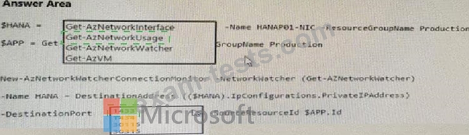 How should you complete the script? To answer, select the appropriate options in the answer are.