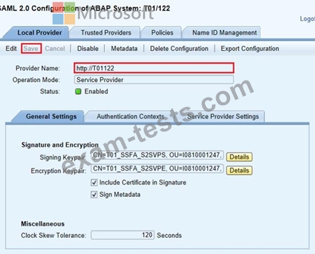 You are configuring SAML 2.0 for an SAP Fiori instance named FPP that uses client 100 to authenticate to an Azure Active Directory (Azure AD) tenant.