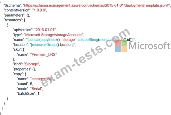 You have the following Azure Resource Manager template.