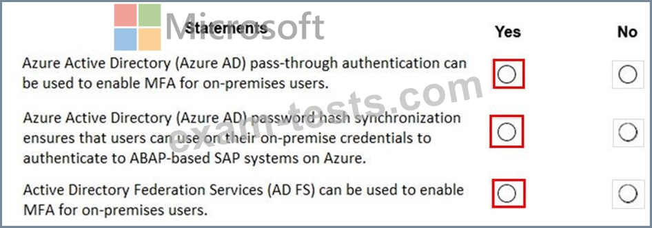 For each of the following statements, select Yes if the statement is true. Otherwise, select No.