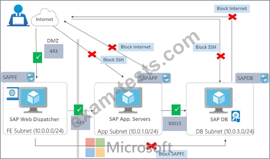 You need to create a design to facilitate end-user access to SAP applications over the Internet, while restricting user access to the virtual machines of the SAP application servers.