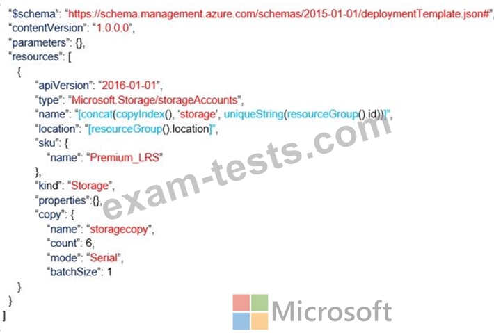 You have the following Azure Resource Manager template.