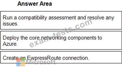 Which three actions should you perform in sequence before the migration? To answer, move the appropriate actions from the list of actions to the answer area and arrange them in the correct order.