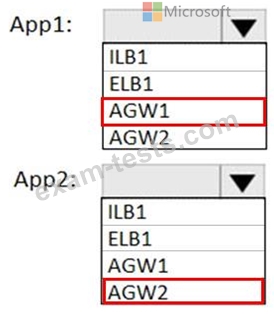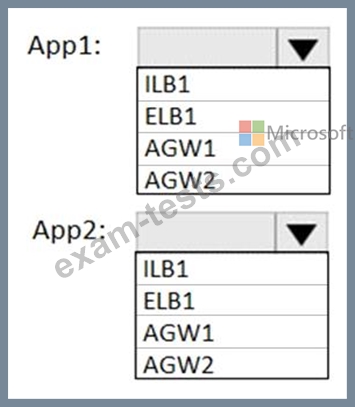 Which resource should you use as the load-balancing solution for each app? To answer, select the appropriate options in the answer area.