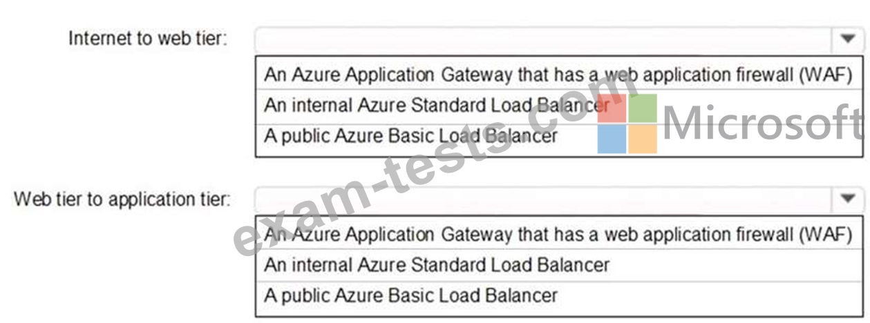 Which load balancing solution should you recommend for each tier? To answer, select the appropriate options in the answer area.