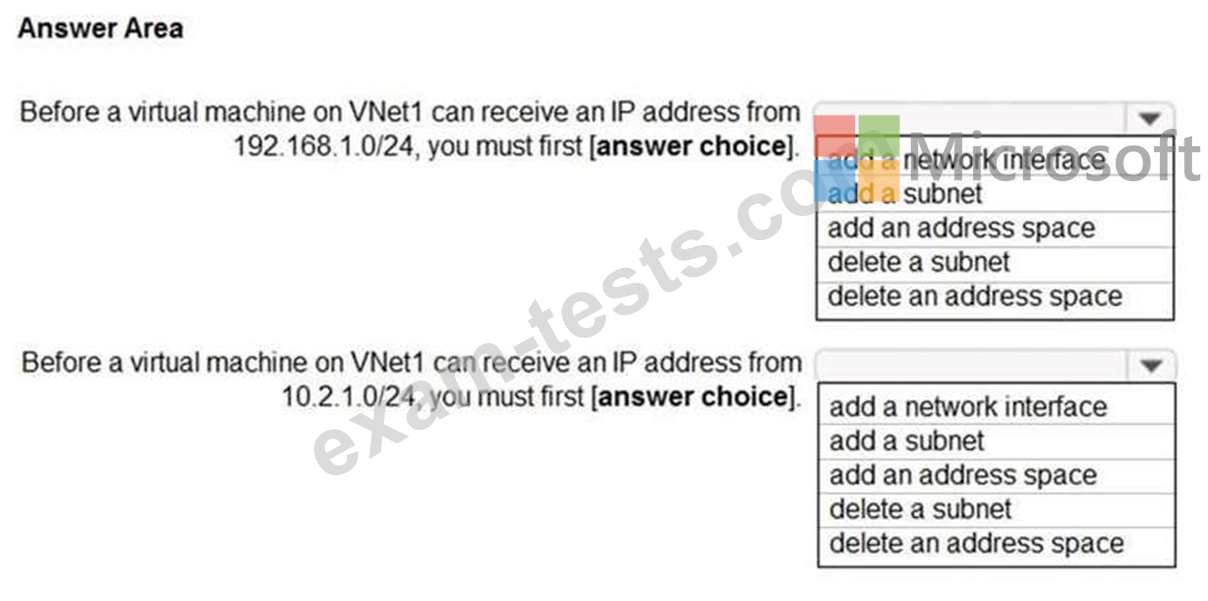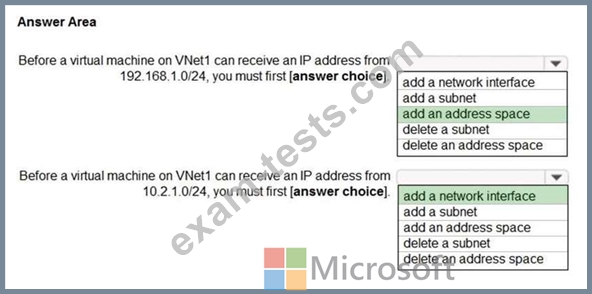 You have a virtual network named VNet1 that has the configuration shown in the following exhibit.