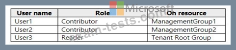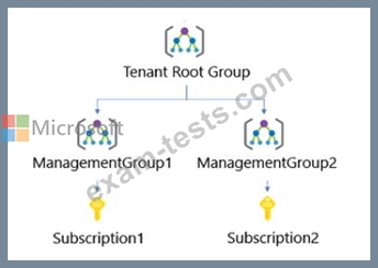 You have a hierarchy of management groups and Azure subscriptions as shown in the following table.