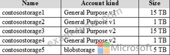 You have an Azure subscription that contains the storage accounts shown in the following table.
