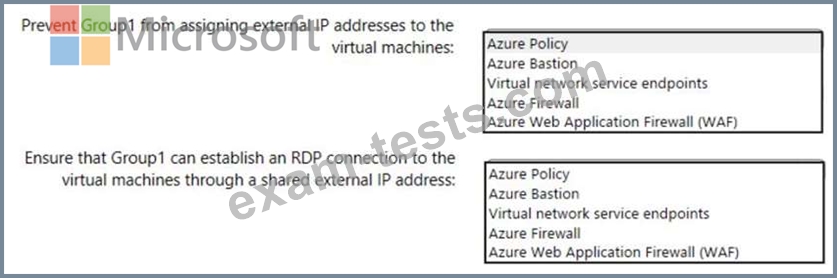 * Ensure that Group1 can establish an RDP connection to the virtual machines through a shared external IP address.