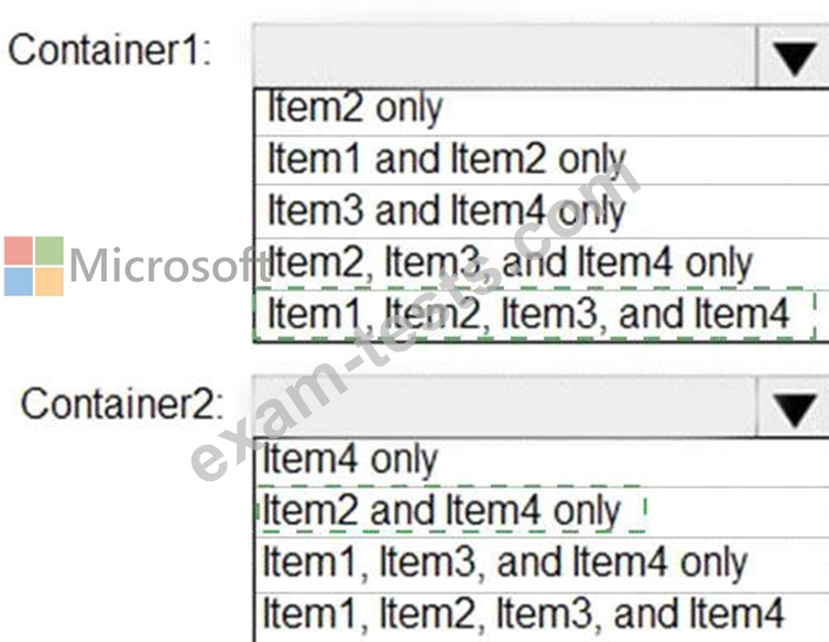 What should you identify for each container? To answer, select the appropriate options in the answer area.