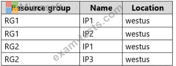 You have an Azure subscription that contains the resource groups shown in the following table.