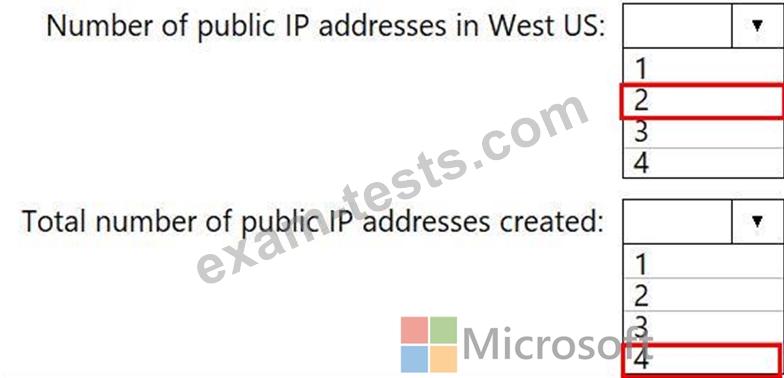 From the Azure portal, you deploy Template1 four times by using the settings shown in the following table.