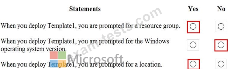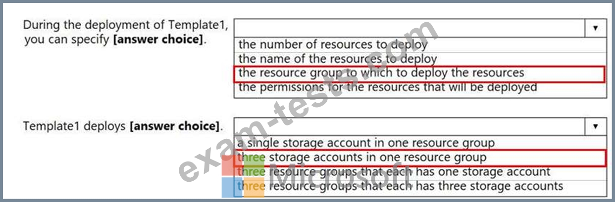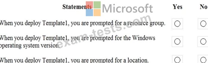 You have an Azure Resource Manager template named Template1 in the library as shown in the following exhibit.