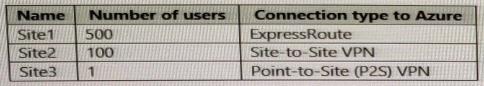 You have the on-premises sites shown the following table.