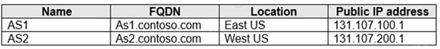 You plan to publish a website that will use an FQDN of www.contoso.com. The website will be hosted by using the Azure App Service apps shown in the following table.